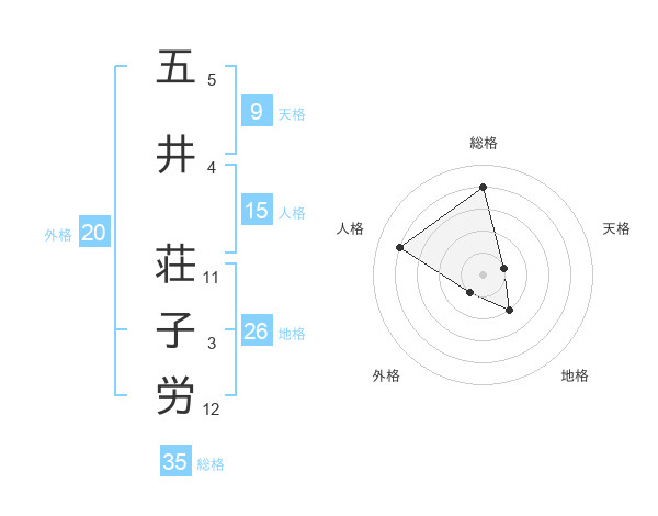 五井 荘子労さんの総格は35画の4点!