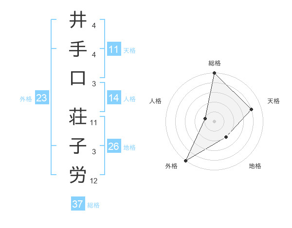井手口 荘子労さんを姓名の画数から五運を鑑定