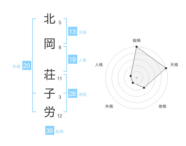 北岡 荘子労さんを姓名の画数から五運を鑑定
