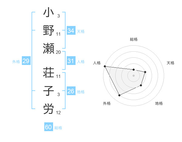 小野瀬 荘子労さんの人格は31画の5点!