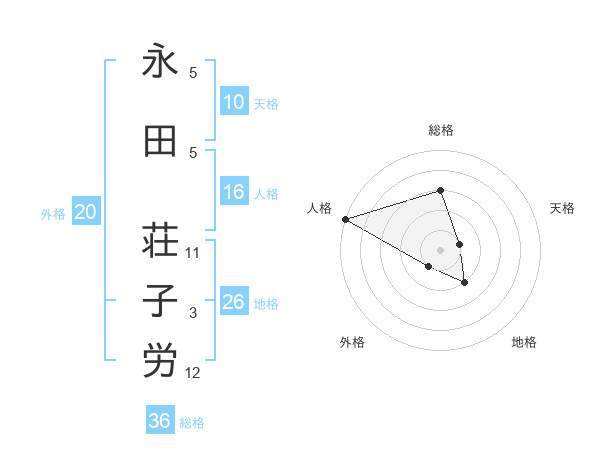 永田 荘子労さんを姓名の画数から五運を鑑定