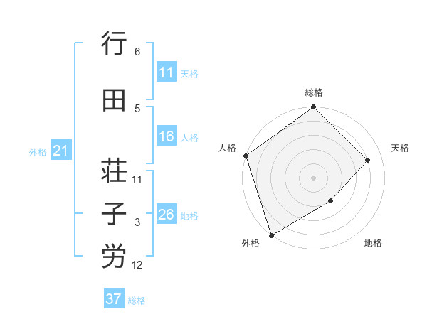 行田 荘子労さんを姓名の画数から五運を鑑定