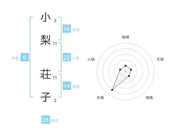 小梨 荘子さんの総格は28画の1点!