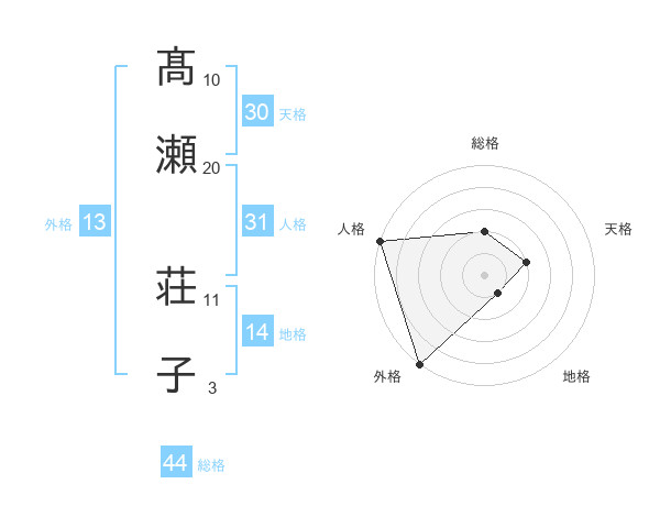 髙瀬 荘子さんの外格は13画の5点!