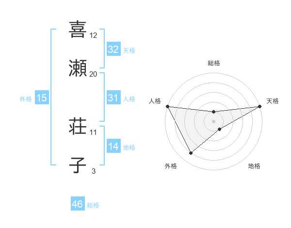 喜瀬 荘子さんの人格は31画の5点!