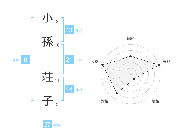 小孫 荘子さんを姓名の画数から五運を鑑定