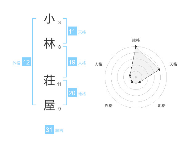小林 荘屋さんの総格は31画の5点!