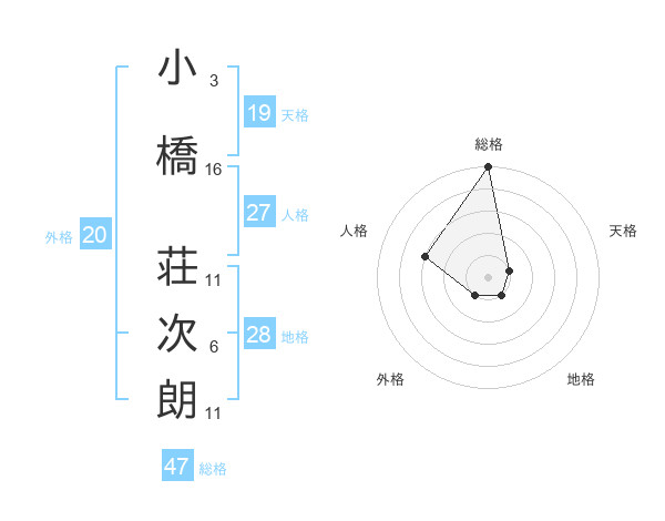 小橋 荘次朗さんを姓名の画数から五運を鑑定