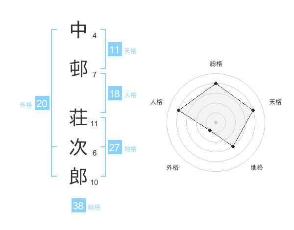 中邨 荘次郎さんを姓名の画数から五運を鑑定