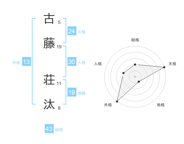 古藤 荘汰さんの外格は13画の5点!