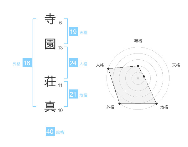 寺園 荘真さんを姓名の画数から五運を鑑定