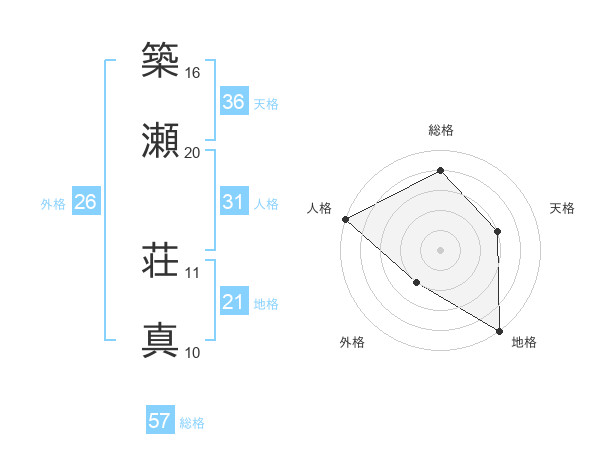 築瀬 荘真さんを姓名の画数から五運を鑑定