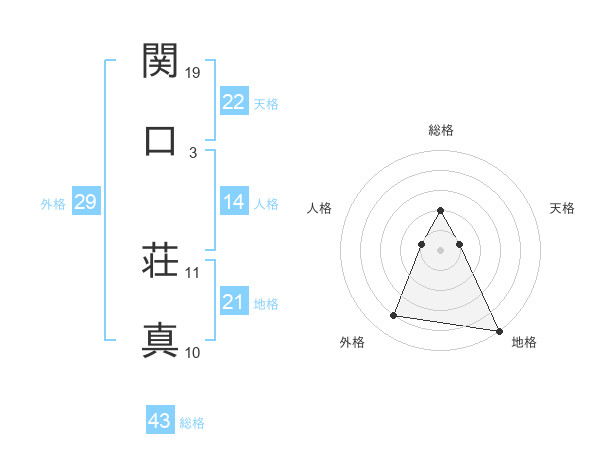 関口 荘真さんの総格は43画の2点!