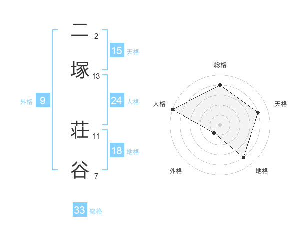 二塚 荘谷さんの総格は33画の4点!