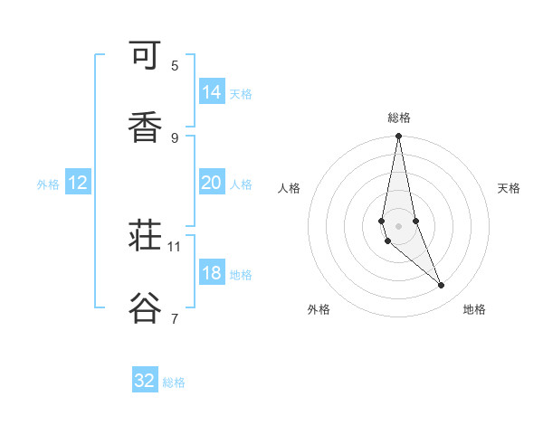 可香 荘谷さんの総格は32画の5点!