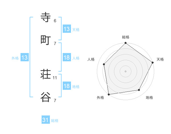 寺町 荘谷さんを姓名の画数から五運を鑑定