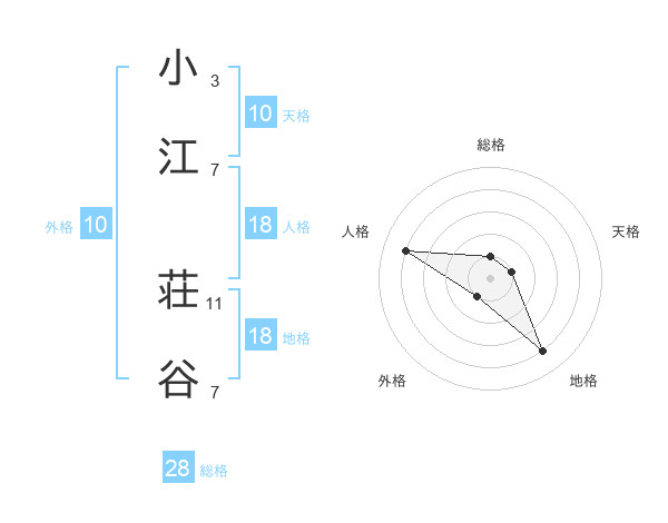 小江 荘谷さんを姓名の画数から五運を鑑定