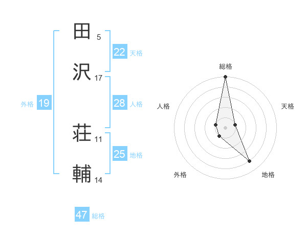 田沢 荘輔さんを姓名の画数から五運を鑑定