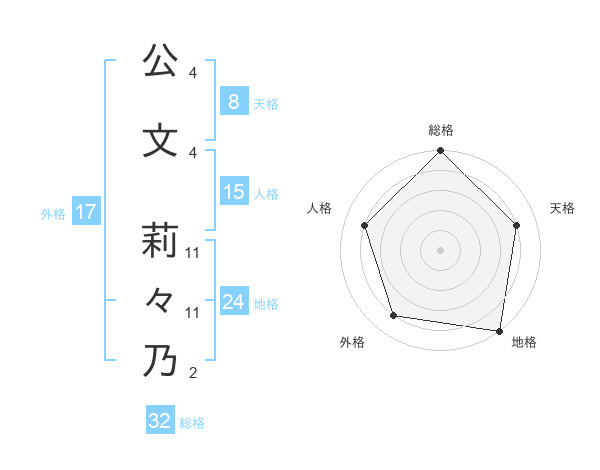 公文 莉々乃さんを姓名の画数から五運を鑑定