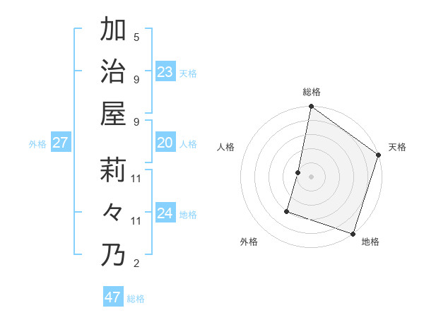 加治屋 莉々乃さんを姓名の画数から五運を鑑定