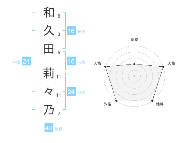 和久田 莉々乃さんを姓名の画数から五運を鑑定