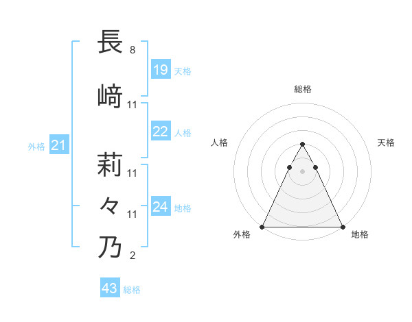 長﨑 莉々乃さんを姓名の画数から五運を鑑定