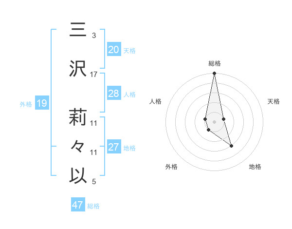 三沢 莉々以さんを姓名の画数から五運を鑑定
