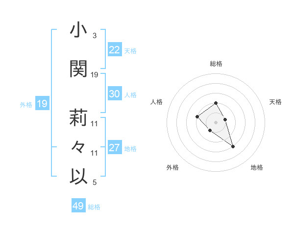 小関 莉々以さんを姓名の画数から五運を鑑定