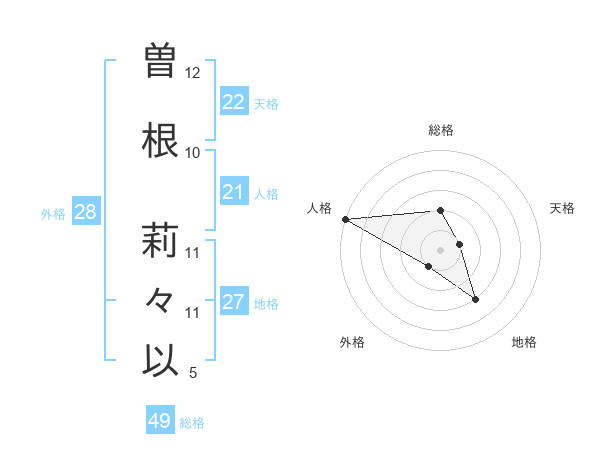 曽根 莉々以さんを姓名の画数から五運を鑑定