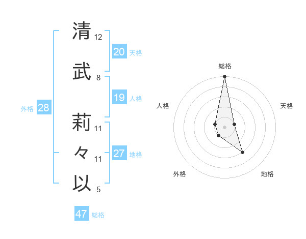 清武 莉々以さんの総格は47画の5点