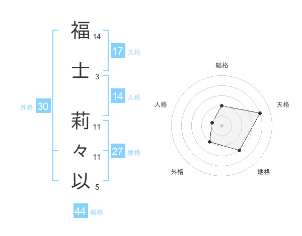 福士 莉々以さんを姓名の画数から五運を鑑定