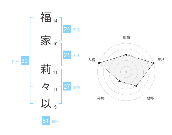 福家 莉々以さんを姓名の画数から五運を鑑定
