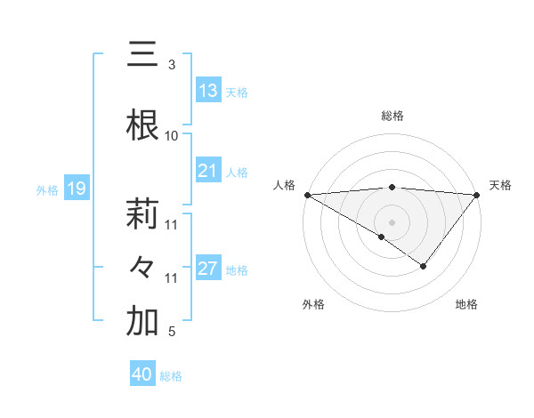三根 莉々加さんを姓名の画数から五運を鑑定