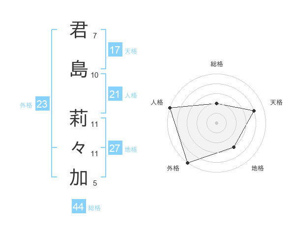 君島 莉々加さんを姓名の画数から五運を鑑定