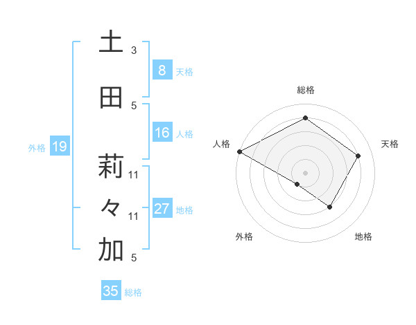 土田 莉々加さんを姓名の画数から五運を鑑定