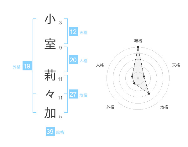 小室 莉々加さんを姓名の画数から五運を鑑定