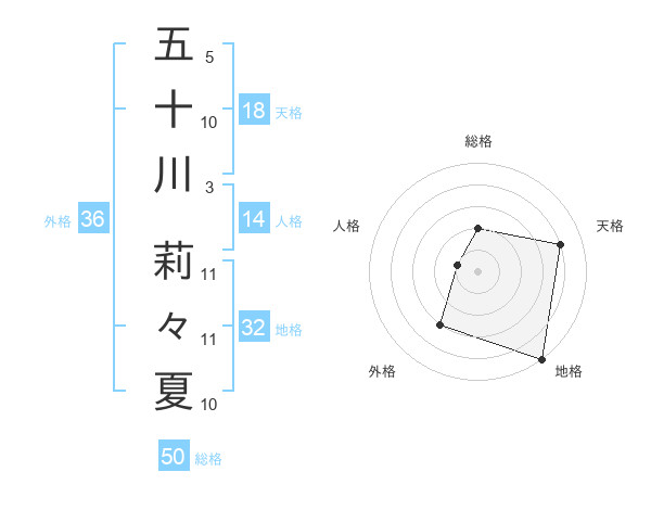 五十川 莉々夏さんを姓名の画数から五運を鑑定