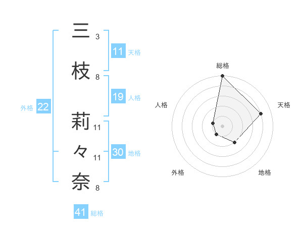 三枝 莉々奈さんを姓名の画数から五運を鑑定