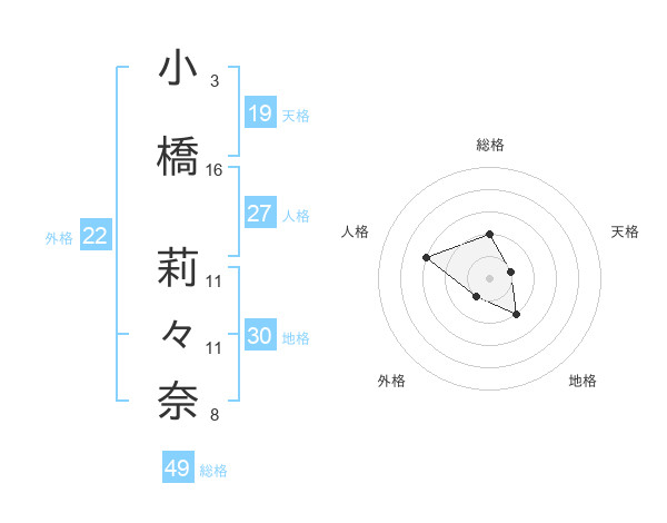 小橋 莉々奈さんを姓名の画数から五運を鑑定