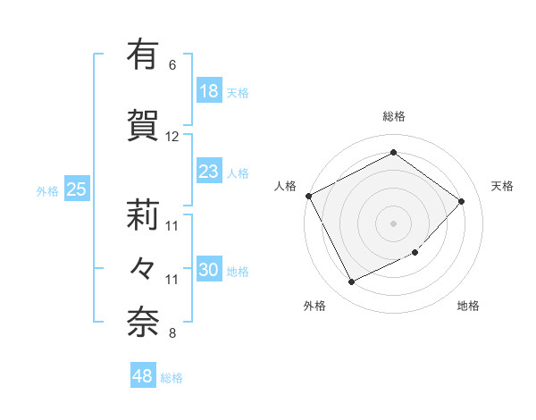 有賀 莉々奈さんを姓名の画数から五運を鑑定