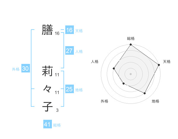 膳 莉々子さんの天格は16画の5点!