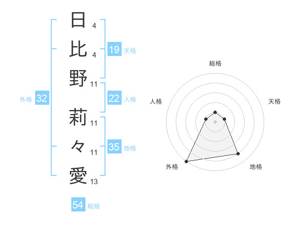 日比野 莉々愛さんを姓名の画数から五運を鑑定