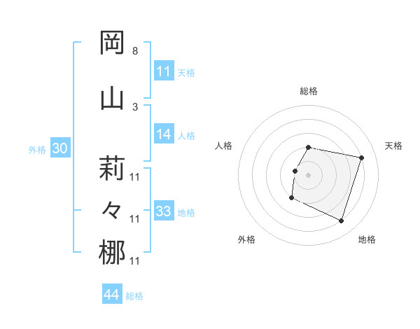 岡山 莉々梛さんを姓名の画数から五運を鑑定