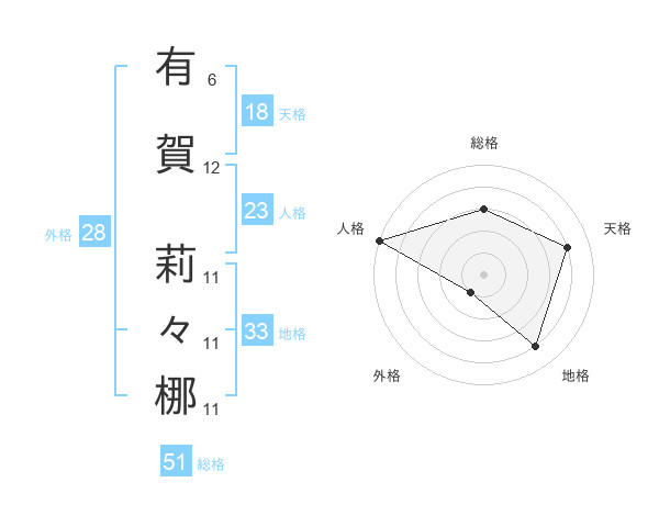 有賀 莉々梛さんを姓名の画数から五運を鑑定