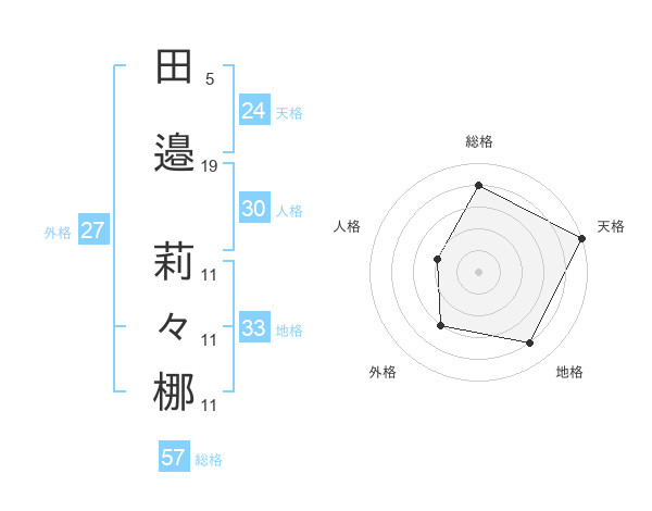 田邉 莉々梛さんを姓名の画数から五運を鑑定