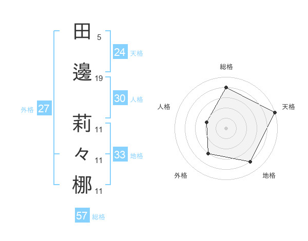 田邊 莉々梛さんを姓名の画数から五運を鑑定