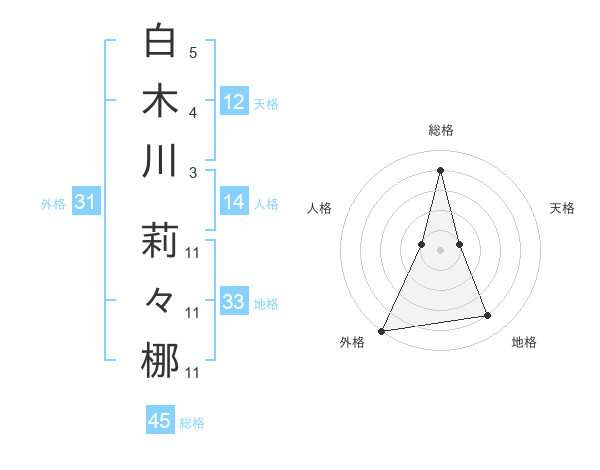 白木川 莉々梛さんを姓名の画数から五運を鑑定