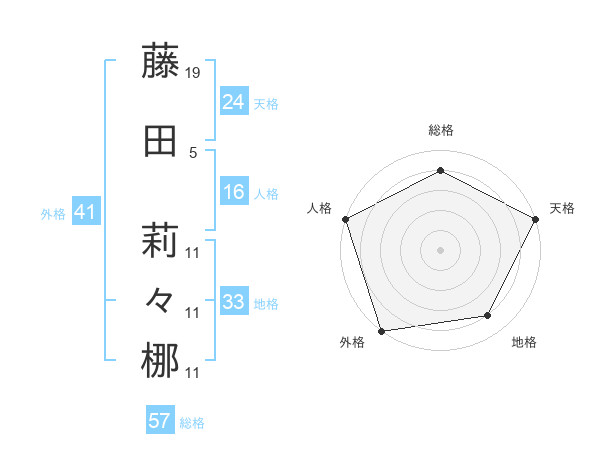 藤田 莉々梛さんを姓名の画数から五運を鑑定