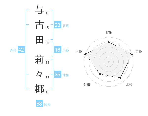与古田 莉々椰さんを姓名の画数から五運を鑑定