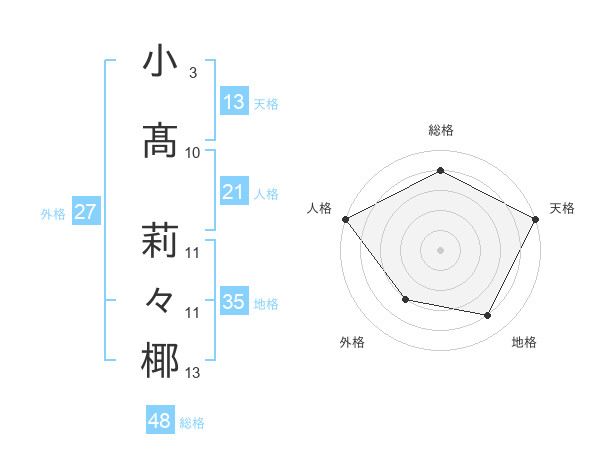 小髙 莉々椰さんを姓名の画数から五運を鑑定